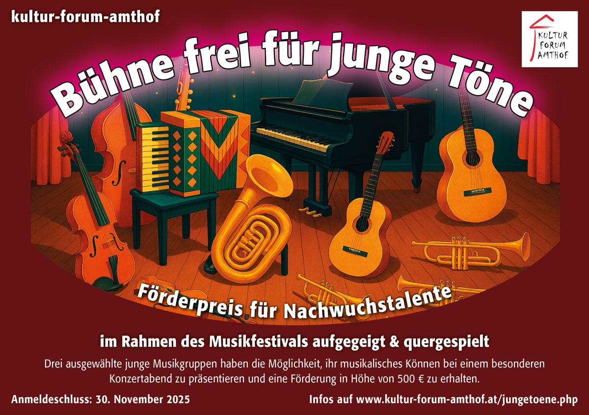 Weitere Informationen und Bewerbungsunterlagen finden sich unter: www.kultur-forum-amthof.at/jungetoene.php