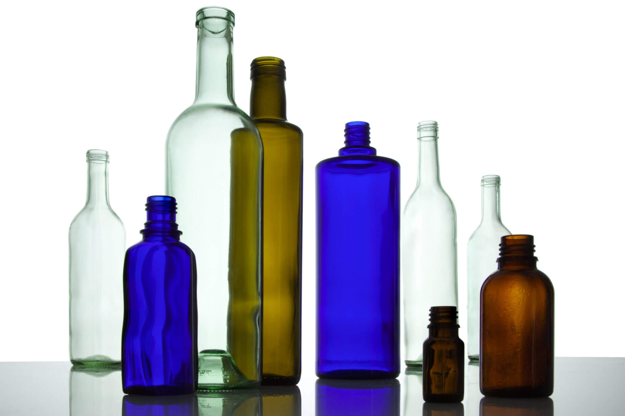 Weiß-/Buntglascontainer – getrennt, restentleert und ohne Verschlüsse: