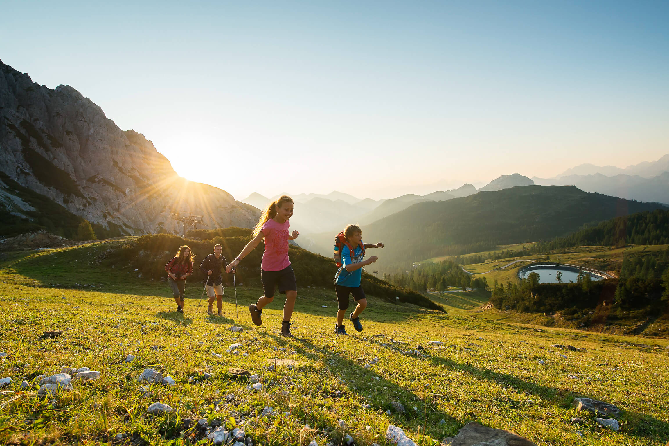 Der Cellonstollen ist aber nur eines von vielen Highlights in der Karnischen Kletterwelt. Einsteiger und versierte Bergfexe finden hier Routen in den Schwierigkeitsgraden A bis D/E. Für alle, die sich mit der ganzen Familie auf den Weg machen, bieten sich zahlreiche leichtere Routen am Nassfeld an. Der Klettersteig über den Winkelturm Ostgrat beispielsweise ist eine recht gemütliche und auch für Anfänger geeignete Klettersteigtour, die mit dem Abstieg über die Contin-Scharte eine landschaftlich schöne Rundtour ergibt. Eine größere Herausforderung für Schwindelfreiheit und den Gleichgewichtssinn stellt der Däumling in unmittelbarer Nähe der Bergstation Gartnerkofel dar. Dieser kurze, aber intensive Aktion-Klettersteig startet mit einem Drahtseilakt, führt über einen mit Türmen bestückten Felsgrat, über vier Seilbrücken – darunter eine sehr lange Nepalbrücke – und kann als perfektes Finish mit einem Aufstieg auf den Gipfel des Gartnerkofels ausklingen.