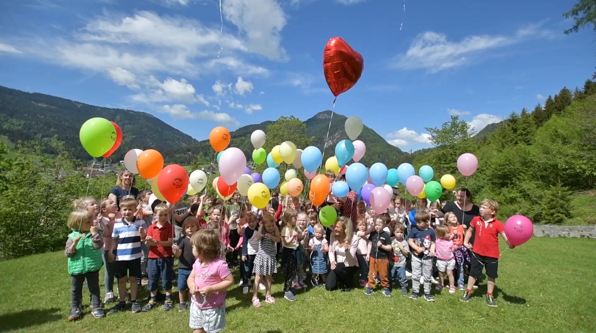 Mit dem „Gitschtallied“ singen insgesamt 89 Kinder aus dem Gitschtal sowie ihre Lehrerinnen und Erzieherinnen für Frieden, Liebe und Freude auf der ganzen Welt.