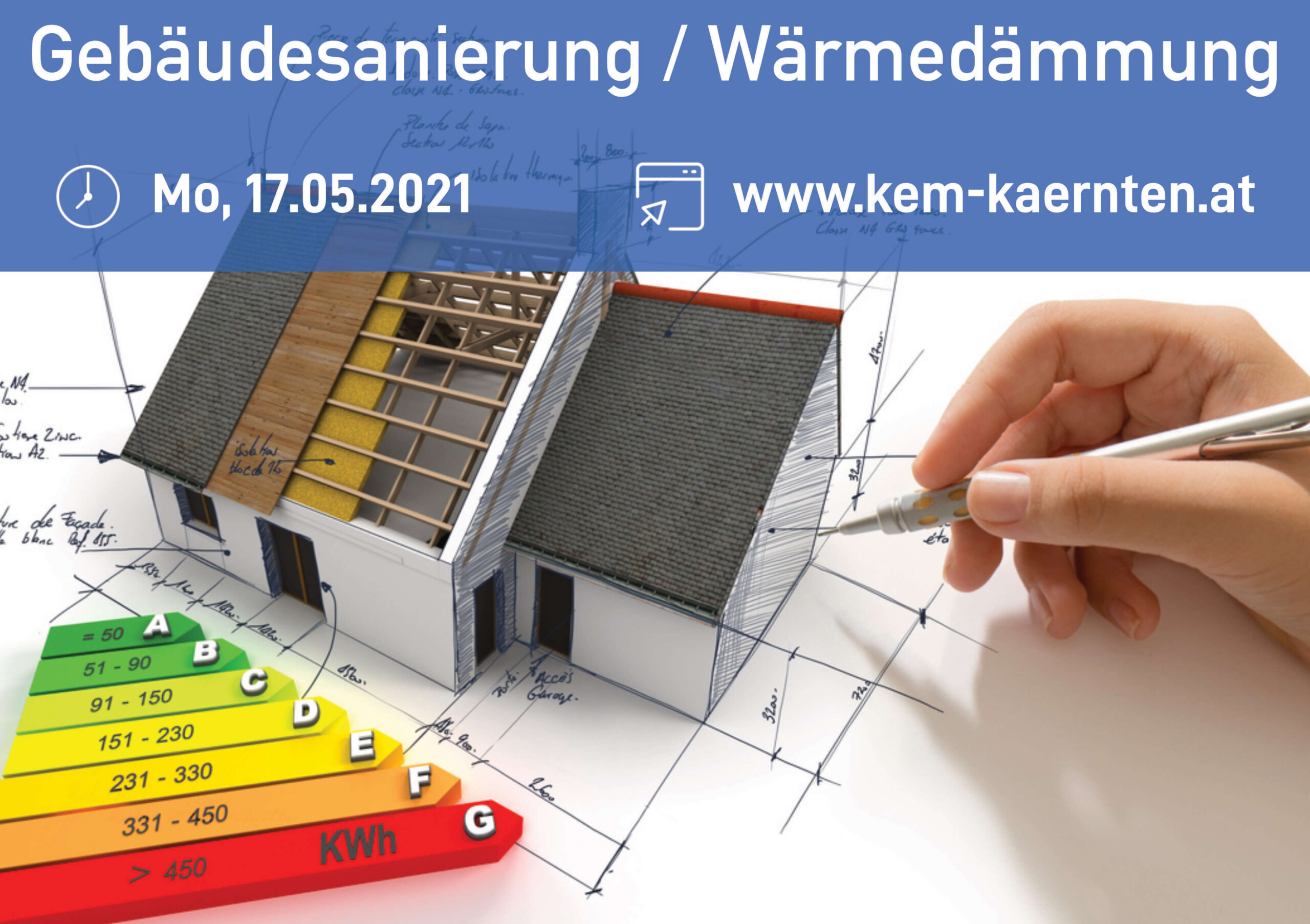 Am 17. Mai um 18:00 startet, nach drei sehr erfolgreichen Veranstaltungen, die vierte gemeinsame Initiative der Kärntner Klima- und Energie-Modellregionen. Diese Online-Veranstaltung widmet sich dem Thema der thermischen Gebäudesanierung. Der Link zur kostenlosen Teilnahme sowie Detailinformationen zu den bisherigen Veranstaltungen rund um Photovoltaik, Speicher und Elektromobilität sind auf www.kem-kaernten.at zu finden.