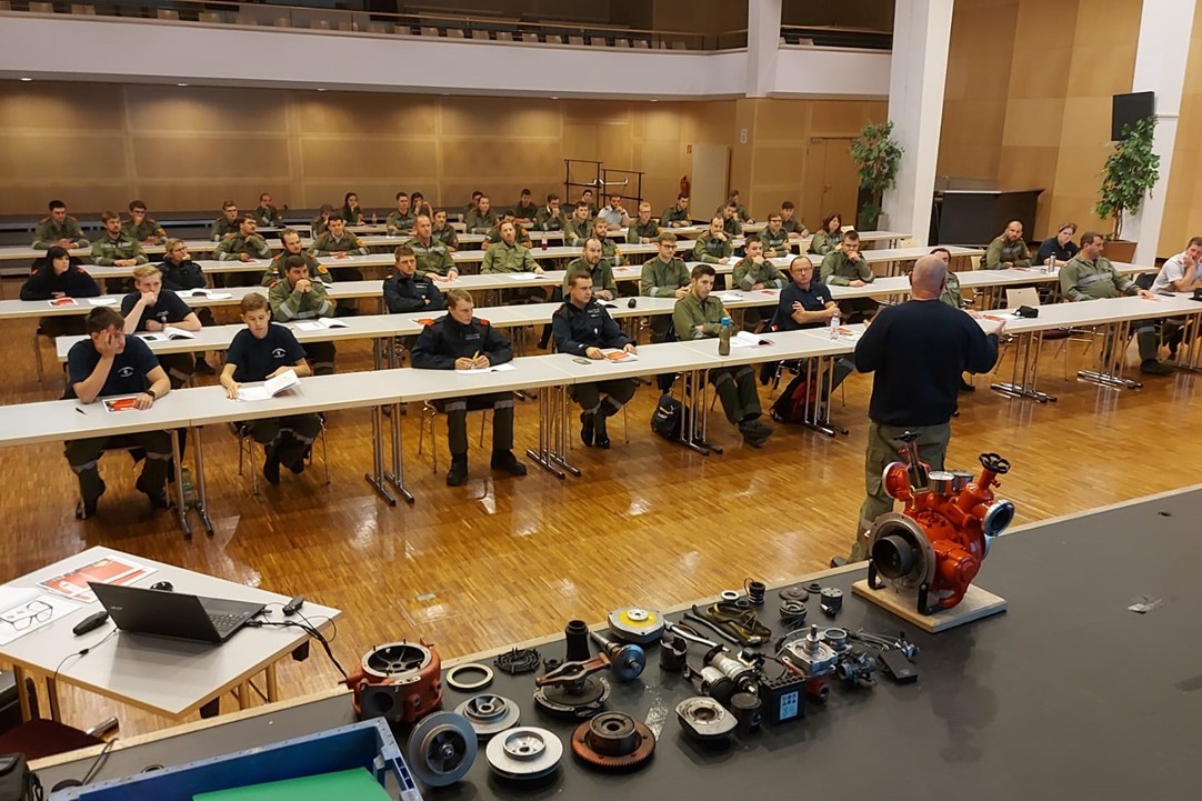 Nach einem Vormittag der Theorie im Lehrsaal, fand die restliche Ausbildung an den verschiedenen Tragkraftspritzen, Notstromaggregaten, Schmutzwasser- und Tauchpumpen im Freien statt. Den Abschluss der Ausbildung bildete eine gemeinsame Übung mit dem Thema „Wasserförderung über eine längere Wegstrecke“ sowie eine schriftliche und praktische Prüfung. Dabei konnten 16 „Ausgezeichnete Erfolge“ verzeichnet werden.